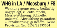 WHG in LA / Moosburg / FSWohnung gerne renov.-bedürftig, ungepflegt, zu entrümpeln, Messie-Wohnung. Schnelle,unkompl. Abwicklung garantiert - Finanzierung gesichert. Keine Provision. Tel. ***