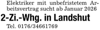 Elektriker mit unbefristetem Arbeitsvertrag sucht ab Januar 20262-Zi.-Whg. in LandshutTel. ***