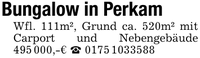 Bungalow in PerkamWfl. 111m², Grund ca. 520m² mit Carport und Nebengebäude ***,-€ _ ***