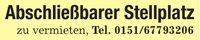Abschließbarer Stellplatzzu vermieten, Tel. ***
