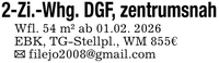 2-Zi.-Whg. DGF, zentrumsnah Wfl. 54 m² ab 01.02. 2026 EBK, TG-Stellpl., WM 855€ _ filejo2008@gmail.com