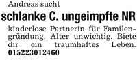Andreas suchtschlanke C. ungeimpfte NRkinderlose Partnerin für Familengründung, Alter unwichtig. Biete dir ein traumhaftes Leben. ***