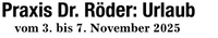 Praxis Dr. Röder: Urlaubvom 3. bis 7. November 2025