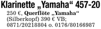 Klarinette "Yamaha" *** €, Querflöte "Yamaha"(Silberkopf) 390 € VB;*** o. ***