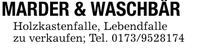 MARDER & WASCHBÄRHolzkastenfalle, Lebendfallezu verkaufen; Tel. ***