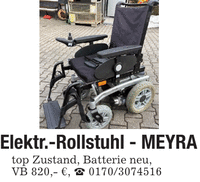 Elektr.-Rollstuhl - MEYRAtop Zustand, Batterie neu,VB 820,- €, _ ***
