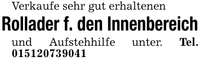 Verkaufe sehr gut erhaltenenRollader f. den Innenbereichund Aufstehhilfe unter. Tel. ***