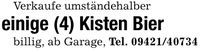Verkaufe umständehalber einige (4) Kisten Bierbillig, ab Garage, Tel. ***