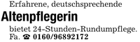 Erfahrene, deutschsprechendeAltenpflegerinbietet 24-Stunden-Rundumpflege.Fa. ***