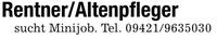Rentner/Altenpflegersucht Minijob. Tel. ***