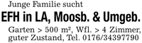 Junge Familie suchtEFH in LA, Moosb. & Umgeb.Garten > 500 m², Wfl. > 4 Zimmer, guter Zustand, Tel. ***
