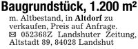 Baugrundstück, 1.200 m²m. Altbestand, in Altdorf zuverkaufen, Preis auf Anfrage._ ***Z Landshuter Zeitung, Altstadt 89, 84028 Landshut