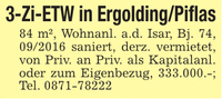 3-Zi-ETW in Ergolding/Piflas84 m², Wohnanl. a.d. Isar, Bj. 74, *** saniert, derz. vermietet, von Priv. an Priv. als Kapitalanl. oder zum Eigenbezug, 333.000.-; Tel. ***