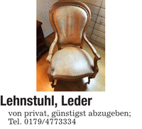 Lehnstuhl, Leder von privat, günstigst abzugeben; Tel. ***