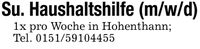 Su. Haushaltshilfe (m/w/d)1x pro Woche in Hohenthann;Tel. ***