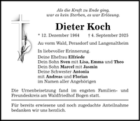 Als die Kraft zu Ende ging, war es kein Sterben, es war Erlösung. Dieter Koch * 12. Dezember 1964 _ 4. September 2025 Au vorm Wald, Perasdorf und Langenaltheim In liebevoller Erinnerung. Deine Ehefrau Elfriede Dein Sohn Sven mit Lisa, Emma und Theo Dein Sohn Marcel mit Jasmin Deine Schwester Antonia mit Andreas und Florian im Namen aller Angehörigen Die Urnenbeisetzung fand im engsten Familien- und Freundeskreis am Waldfriedhof Bogen statt. Für bereits erwiesene und noch zugedachte Anteilnahme bedanken wir uns herzlich.