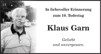 In liebevoller Erinnerung zum 10. Todestag Klaus Garn Geliebt und unvergessen.