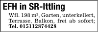 EFH in SR-IttlingWfl. 198 m², Garten, unterkellert, Terrasse, Balkon, frei ab sofort; Tel. ***