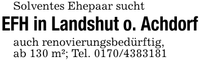 Solventes Ehepaar suchtEFH in Landshut o. Achdorfauch renovierungsbedürftig,ab 130 m²; Tel. ***