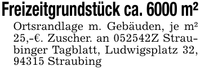 Freizeitgrundstück ca. 6000 m²Ortsrandlage m. Gebäuden, je m² 25,-€. Zuscher. an ***Z Straubinger Tagblatt, Ludwigsplatz 32, 94315 Straubing