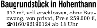 Baugrundstück in Hohenthann972 m², voll erschlossen, ohne Bauzwang, von privat, Preis 259.000 €, _*** ab 18 Uhr