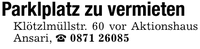 Parklplatz zu vermietenKlötzlmüllstr. 60 vor Aktionshaus Ansari, _ ***