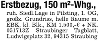 Erstbezug, 150 m²-Whg.,ruh. Siedl.Lage in Pilsting, 1. OG, großz. Grundriss, helle Räume m. EBK, kl. Blk., KM 1.500,-€ + NK. ***Z Straubinger Tagblatt, Ludwigsplatz 32, 94315 Straubing