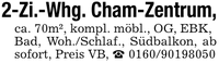 2-Zi.-Whg. Cham-Zentrum,ca. 70m², kompl. möbl., OG, EBK,Bad, Woh./Schlaf., Südbalkon, ab sofort, Preis VB, _ ***