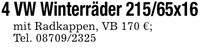 4 VW Winterräder 215/65x16mit Radkappen, VB 170 €;Tel. ***