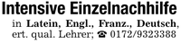 Intensive Einzelnachhilfein Latein, Engl., Franz., Deutsch, ert. qual. Lehrer; _ ***