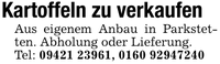 Kartoffeln zu verkaufen Aus eigenem Anbau in Parkstetten. Abholung oder Lieferung. Tel: ***, ***