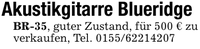 Akustikgitarre Blueridge BR-35, guter Zustand, für 500 € zu verkaufen, Tel. ***