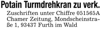 Potain Turmdrehkran zu verk.Zuschriften unter Chiffre ***A Chamer Zeitung, Mondscheinstraße 1, 93437 Furth im Wald