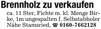 Brennholz zu verkaufenca. 11 Ster, Fichte m. kl. Menge Birke, 1m ungespalten f. Selbstabholer Nähe Stamsried, _ ***