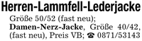 Herren-Lammfell-LederjackeGröße 50/52 (fast neu);Damen-Nerz-Jacke, Größe 40/42, (fast neu), Preis VB; _ ***