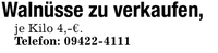 Walnüsse zu verkaufen,je Kilo 4,-€.Telefon: ***