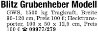 Blitz Grubenheber ModellGWS, 1500 kg Tragkraft, Breite 90-120 cm, Preis 100 €; Hecktransporter, 100 x 50 x 12,5 cm, Preis 100 € _ ***