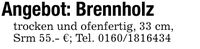 Angebot: Brennholztrocken und ofenfertig, 33 cm,Srm 55.- €; Tel. ***