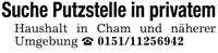 Suche Putzstelle in privatemHaushalt in Cham und näherer Umgebung _ ***
