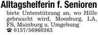 Alltagshelferin f. Seniorenbiete Unterstützung an, wo Hilfe gebraucht wird, Moosburg, LA, FS, Mainburg u. Umgebung_ ***