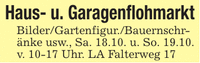 Haus- u. GaragenflohmarktBilder/Gartenfigur./Bauernschränke usw., Sa. 18.10. u. So. 19.10. v. 10-17 Uhr. LA Falterweg 17