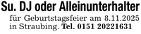 Su. DJ oder Alleinunterhalterfür Geburtstagsfeier am 8.11.2025 in Straubing. Tel. ***