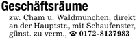 Geschäftsräumezw. Cham u. Waldmünchen, direkt an der Hauptstr., mit Schaufenster, günst. zu verm., _ ***
