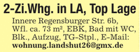 2-Zi.Whg. in LA, Top Lage Innere Regensburger Str. 6b, Wfl. ca. 73 m², EBK, Bad mit WC, Blk., Aufzug, TG-Stpl., E-Mail: wohnung.landshut26@gmx.de