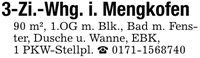 3-Zi.-Whg. i. Mengkofen 90 m², 1.OG m. Blk., Bad m. Fenster, Dusche u. Wanne, EBK, 1 PKW-Stellpl. _ ***