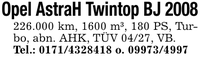 Opel AstraH Twintop BJ ***.000 km, 1600 m³, 180 PS, Turbo, abn. AHK, TÜV 04/27, VB.Tel.: *** o. ***