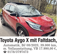 Toyota Aygo X mit Faltdach, Automatik, BJ ***, 39.000 km, m. Vollausstattung, VB 17.990,00 €, _ ***