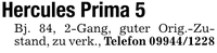 Hercules Prima 5Bj. 84, 2-Gang, guter Orig.-Zustand, zu verk., Telefon ***