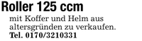 Roller 125 ccmmit Koffer und Helm ausaltersgründen zu verkaufen.Tel. ***