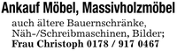 Ankauf Möbel, Massivholzmöbelauch ältere Bauernschränke, Näh-/Schreibmaschinen, Bilder; Frau Christoph ***